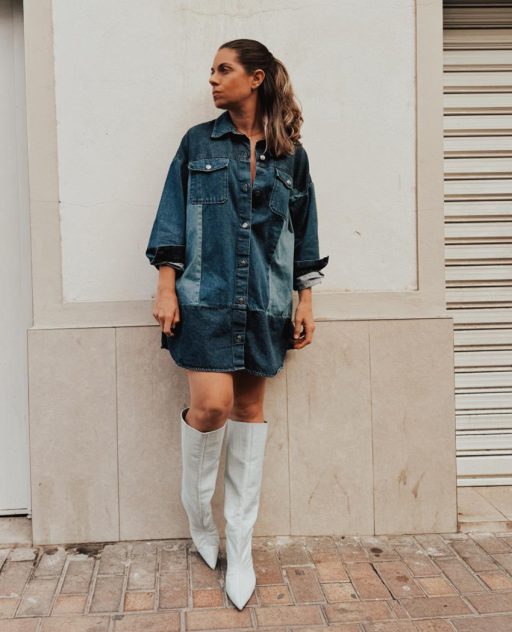 · Vestido mangas largas · 100% tejido vaquero · Con cinturón · Frase empoderante · Con bolsillos · Disponible en talla única M · Diseñado y fabricado en España